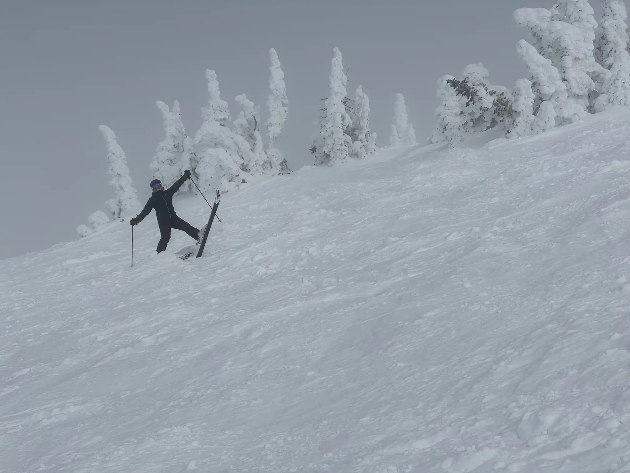 Most of the day was spent lapping Blackfoot. It was pretty foggy on the top of the mountain and the trees off Blackfoot held the fog off.