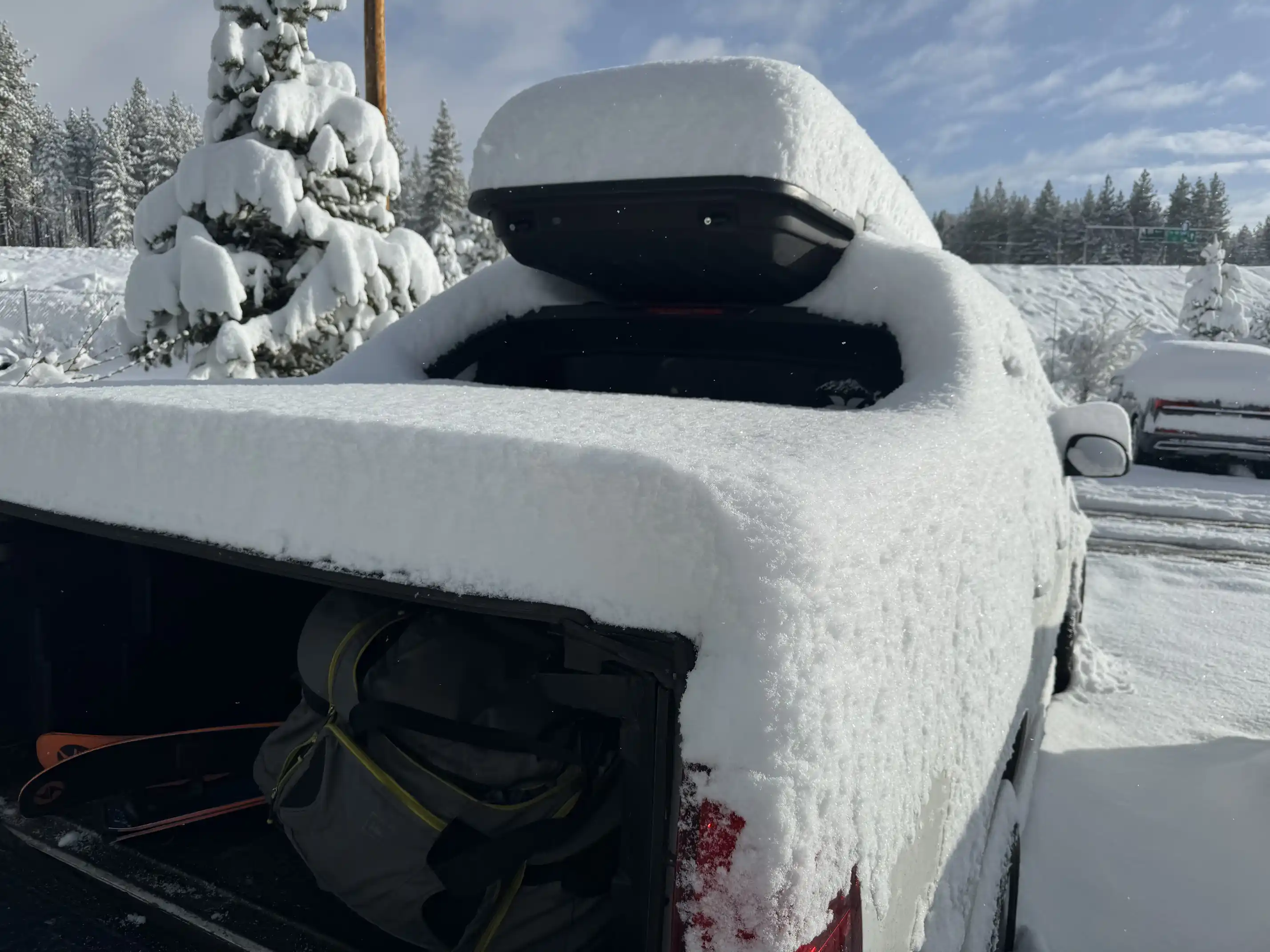 ...until the pass shut down! We got stuck in Truckee and decided to hit the storm. 1hr lift lines, but amazing snow with waist deep powder in some spots. It was awesome!
